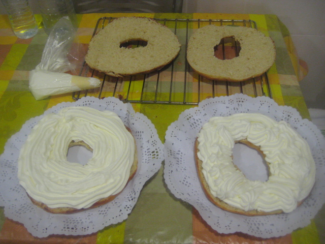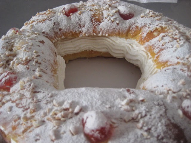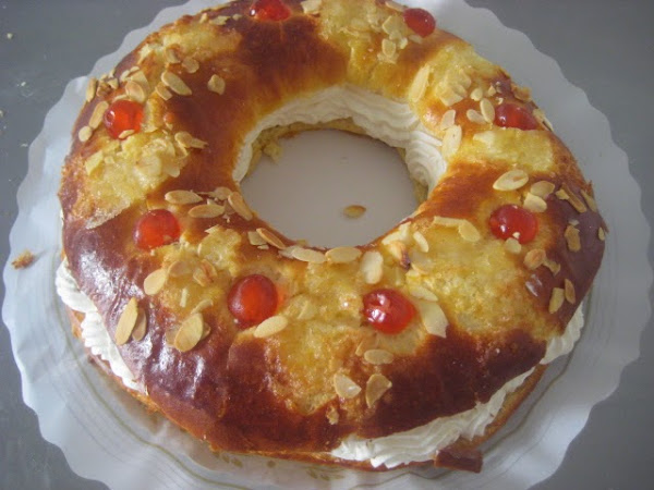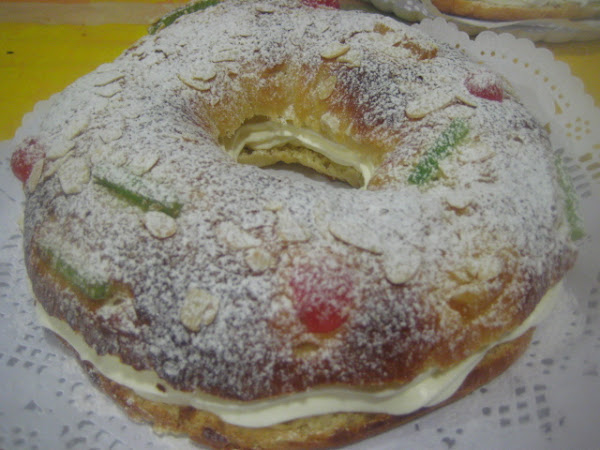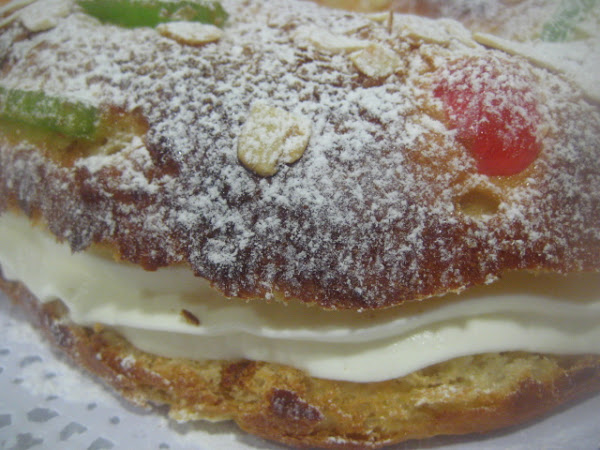 Preparación: El día antes hacer el prefermento y la infusión, es decir, mezclar por un lado la harina + leche + levadura y guardar en la nevera en un bote hermético. Por otro lado, hervir 5 minutos la leche con las pieles de cítricos y la canela y ya fría guardar en la nevera hasta el día siguiente. Para hacer la masa poner en un bol o en la amasadora todos los ingredientes menos la mantequilla y amasar 5 minutos. Cuando la masa esté uniforme, agregar la mantequilla ablandada y amasar otros 5 minutos. Dejar reposar en lugar templado 1 hora o en la nevera hasta el día siguiente, siempre bien tapada. La masa será pegajosa, por lo que es preciso untarse las manos y la superficie de trabajo con un poco de harina. Dividir la masa en dos partes (400-500 gr.) Bolear y reposar 10 minutos para que la masa se relaje. Luego formar el roscón haciendo un agujero en el centro de cada masa y estirar como si fuese una correa dejando que se vaya formando al caer por su propio peso. Si al ponerlo sobre la bandeja vemos que se encoje, dejar reposar unos minutos y luego rectificar el agujero, que debe ser bien grande para que en el momento de fermentar no se cierre y quede un roscón feo. Pincelar con huevo batido y dejar fermentar una hora más o menos en fermentadora y al menos dos horas si no se dispone de fermentadora. Volver a pincelar con huevo batido y decorar con frutas confitadas, azúcar perlado o azúcar humedecido, almendras…. Hornear unos 20 minutos a 185-190 º C. El tiempo depende mucho de cada horno. Dejar enfriar sobre rejilla y luego ya está listo para simplemente espolvorear con azúcar glas o bien abrir por la mitad y rellenar con nata (crema de leche), crema, trufa…