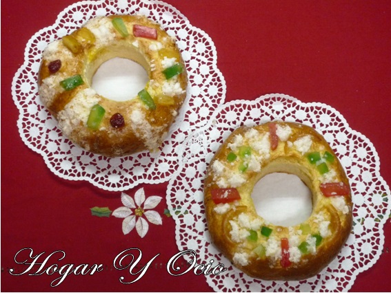 Me hacía mucha ilusión preparar el roscón para el desayuno de reyes, me lo había planteado como un reto y parece que el año comienza bien porque ha salido de maravilla y a la primera. Lo he hecho de forma tradicional, sin ayuda de ninguna máquina para el amasado así que la satisfacción es todavía mayor. Con las cantidades indicadas he hecho dos roscones pequeños, si lo queréis podéis hacer uno muy grande. La receta es fruto de la visita a muchos blogs, la he adaptado a mis preferencias en cuanto a cantidades e ingredientes quedándome con lo que me ha parecido mejor de cada uno de ellos y aportando mi toque personal. No es una receta difícil, menos aun si disponéis de algún robot de cocina que os ayude con el amasado, pero no voy a negaros que requiere una buena dósis de paciencia para respetar el tiempo de los levados.