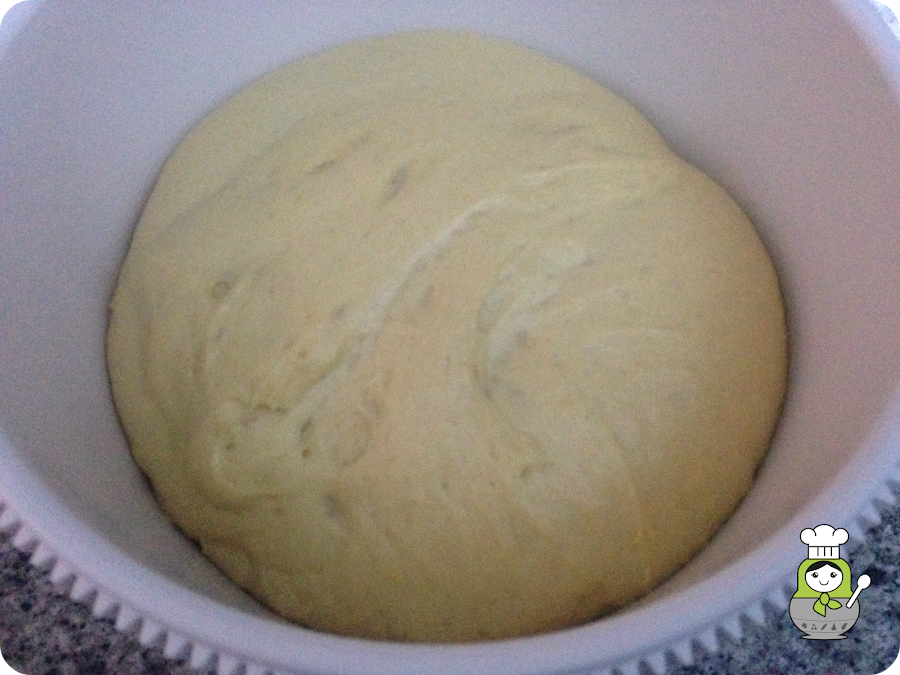 Colocamos la masa en un bol enharinado, cubrimos con un paño de algodón y dejamos reposar en un sitio sin corrientes, como el horno o el microondas, hasta que la masa doble su volumen, unas dos horas.