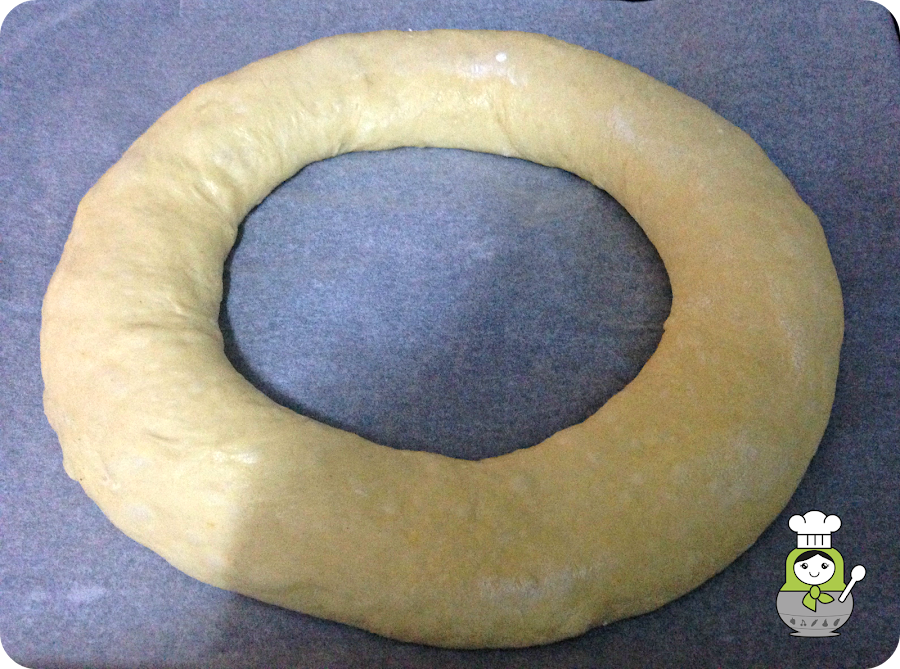 Transcurrido este tiempo, ya podremos manejar la masa sin dificultad y sin que encoja. Ahora hay que formar el roscón. Para ello, os puede resultar de mucha utilidad mojar los dedos en aceite. Pinchamos el centro del horno con dos dedos y vamos estirando la bola hasta formar un anillo y vamos estirándolo de forma homogénea.