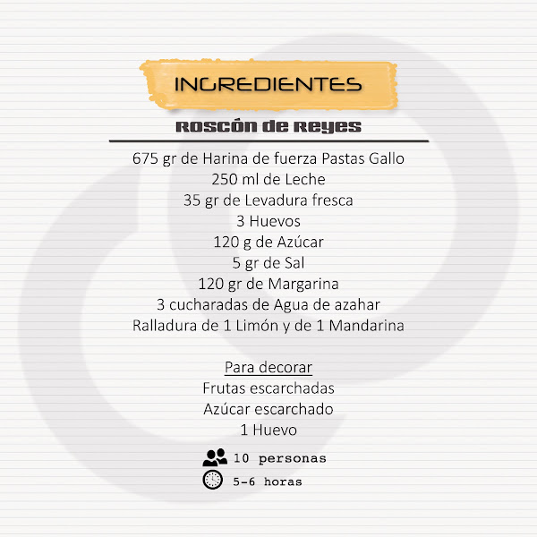 Para esta receta he utilizado la harina de Fuerza de Pastas Gallo ideal para preparar Roscones. Esta es una receta tradicional (sin relleno) pero también podéis rellenarlo de lo que os apetezca (trufa, nafa, cabello de ángel, crema, etc...) Y si queréis hacerlo más perfecto tendréis que ponerle una figurita y una haba, para que así al que le toque tenga que pagarlo al año que viene.