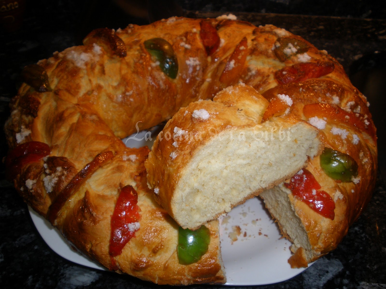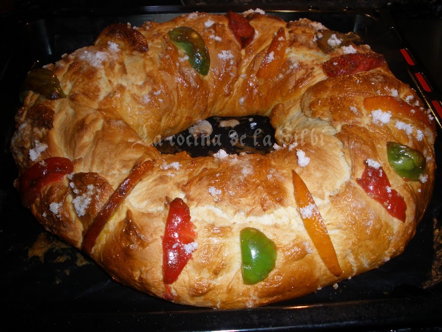 Este año que acaba de hacer su llegada, me he animado a hacer mi primer rosco de reyes.Me hacía tanta ilusión hacerlo yo misma...La verdad esque no a quedado mal, pero el tema de las medidas y el tiempo de horno me ha traido un poco de cabeza y lo he hecho un poquito a ojo, y menos mal que ha quedado bien. Saque la receta del rosco de esta web,La navidad , y empecé a hacerlo exactamente así, pero conforme lo fui haciendo tuve que modificar varias cosillas..INGREDIENTES