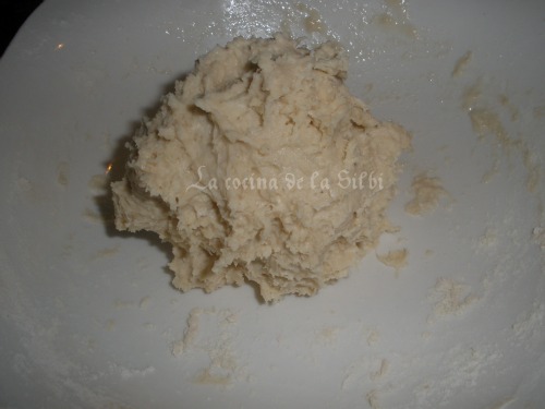 Ahora es el momento de seguir añadiendo la harina que os pida la masa. Tiene que quedar una masa elastica y que se pegue muy poco en los dedos.