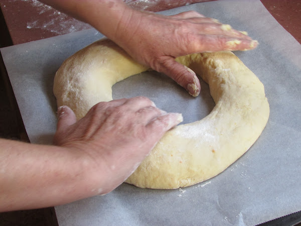 Para formar el roscón introducimos los dedos en el centro y vamos abriendo hasta que el agujero central sea bastante grande.