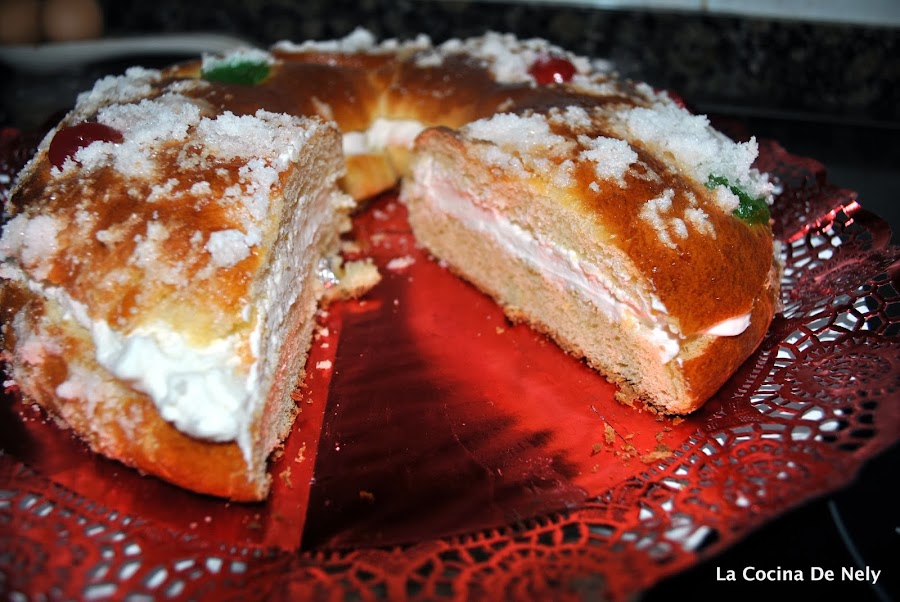 He aquí el Roscón de Reyes , tradición de un gran banquete en el cual hay dos sorpresas para los que tengan suerte.