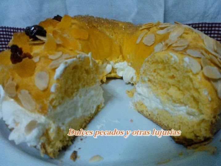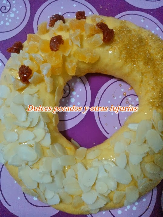 Y mientras esperamos hemos estado deleitándonos con un buenísimo roscón que hice siguiendo los pasos de Cristina de Kanela y Limón, otro de los blogs super-recomendables.