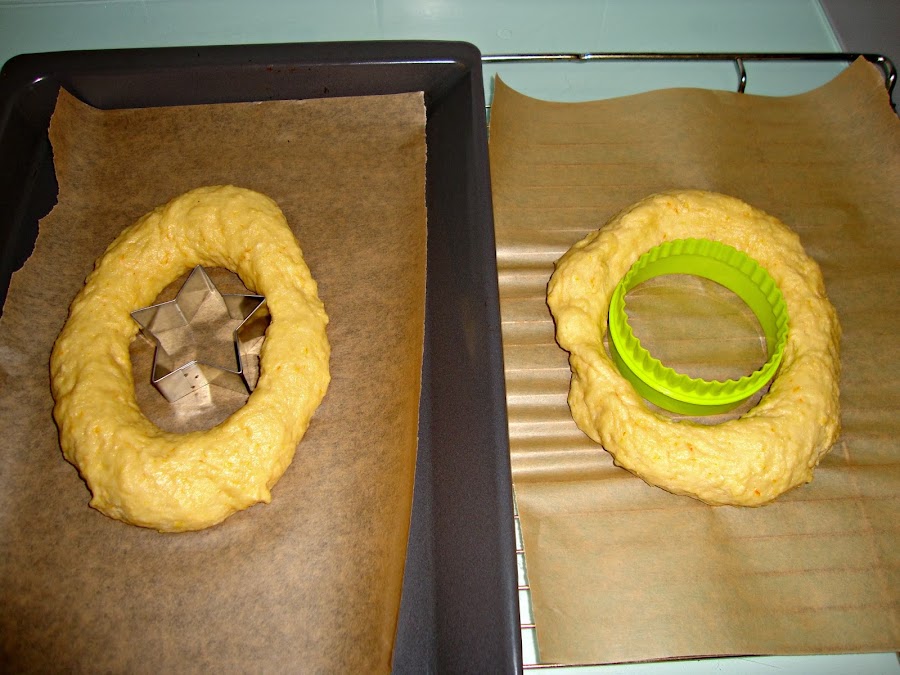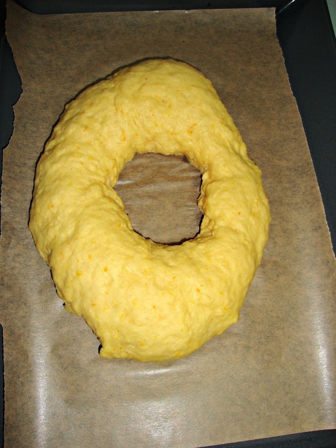 Luego se vuelve a amasar delicadamente para que se desgasifique y ya lo dividimos en 2 partes iguales (si queremos un solo roscón grande no hace falta) y le damos la forma de roscón.