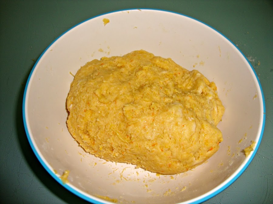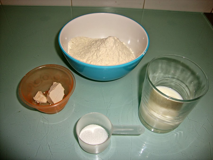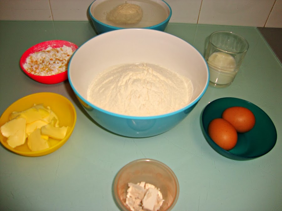 Todos los ingredientes tienen que estar a temperatura ambiente. Deshacemos la levadura fresca en la harina, le añadimos el azúcar y la leche y lo mezclamos todos hasta formar una masa homogénea con la que formamos una bola.