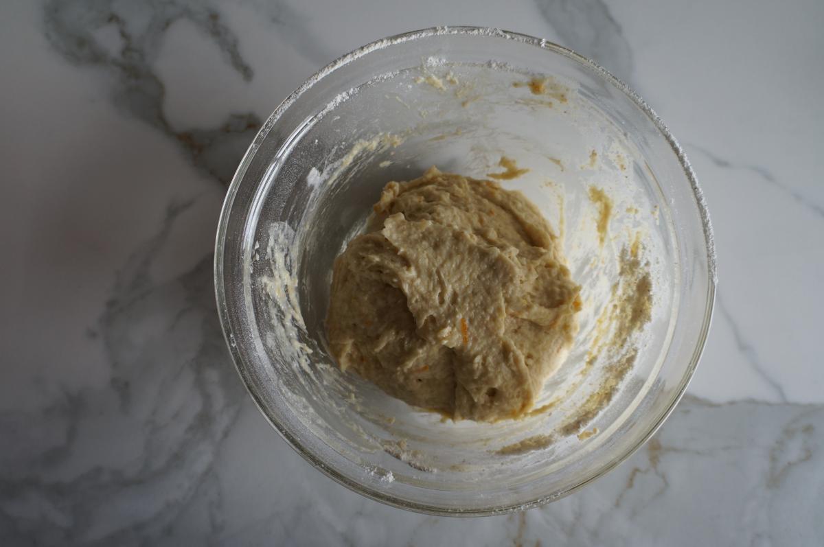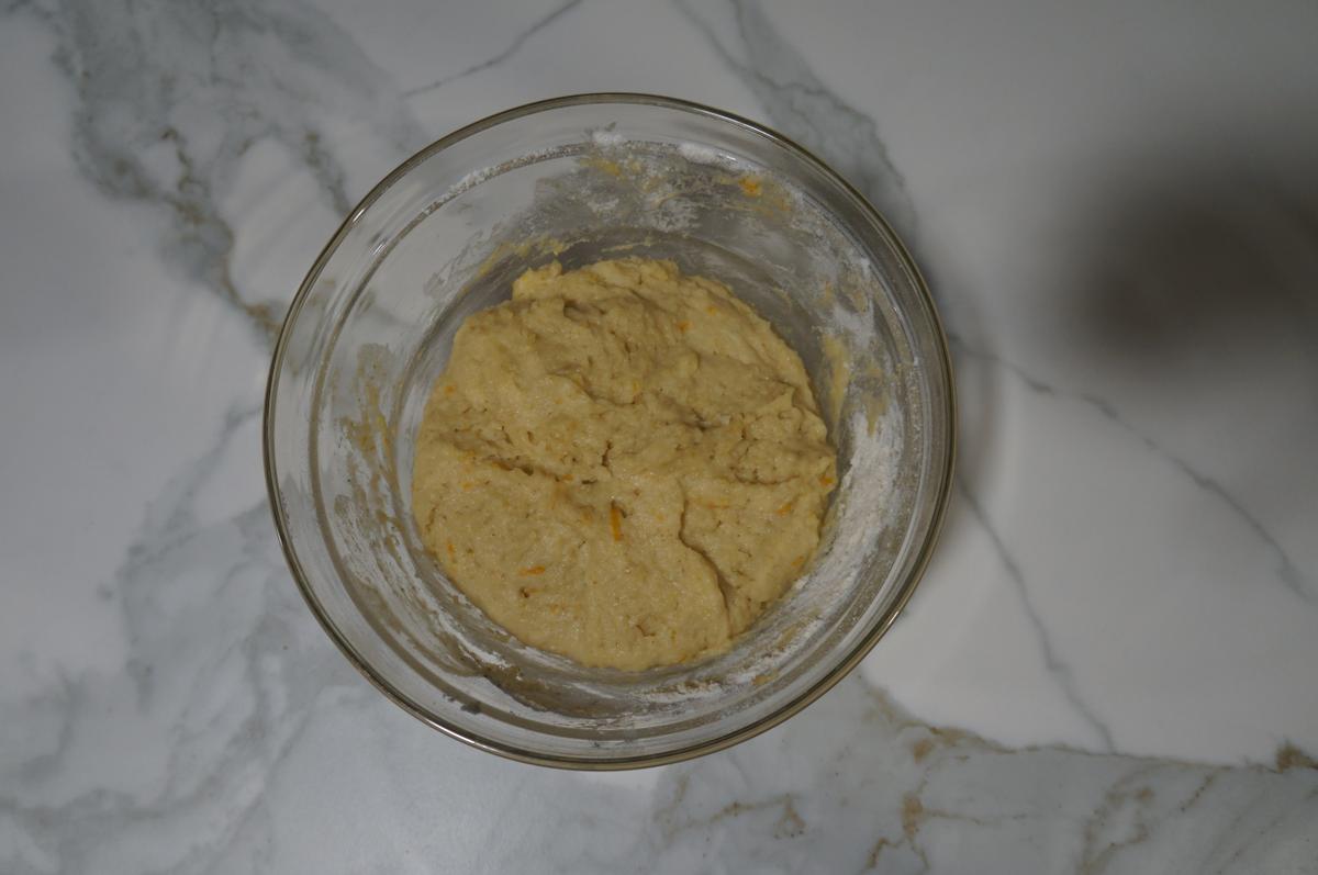 La clave de esta receta es conseguir una masa que queda entre bizcocho y pan, similar a un bollo pero con el aroma carácterístico que le da la ralladura de naranja y el agua de azahar.