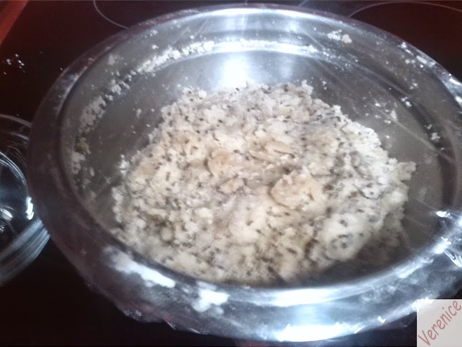 Se hace un hueco en el medio y se le agrega el aceite con las semillas fritas