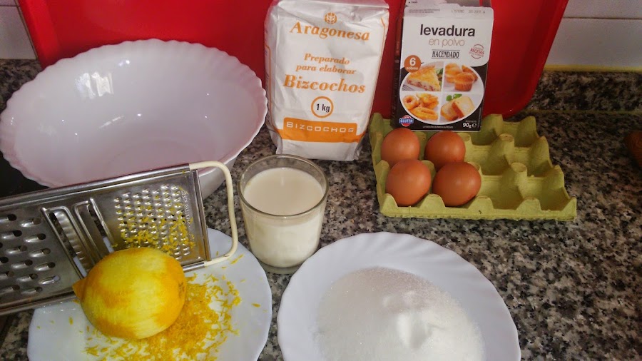 Se baten las yemas, se agrega la leche, a continuación el azúcar, y se bate. Se añade el aceite , la ralladura de limón y el anís y