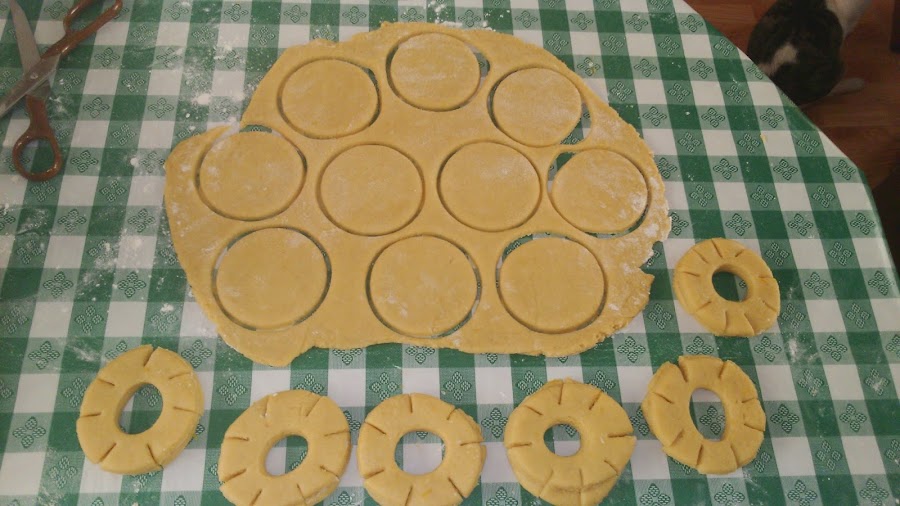 una vez los tengamos unidos con unas tijeras les vamos haciendo unos cortes ( esto no es necesario pueden salir redondillos y estarán igualmente si os fijáis en esta foto viereis que yo los ice de las dos formas )