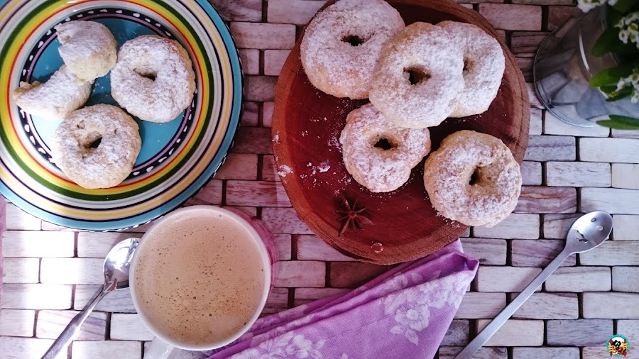 3.- Precalienta el horno a 200ºC, mientras tanto, dividimos la masa en bolitas y le damos la forma tradicional de rosquillas. Colocamos las rosquillas sobre una placa cubierta con papel de horno, las horneamos 15 minutos aproximadamente. Hasta que estén un poco doradas por fuera. Recuerda que no tienen que estar muy duras al retirarlas del horno, porque se endurecen un poco al enfriarse. Los dejamos enfriar sobre una rejilla, antes de enfriar del todo esparcimos por encima de las rosquillas el azúcar glas. Dejamos que se enfríen por completo antes de darle un bocado.