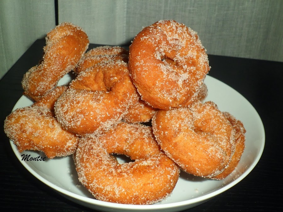 Cuando estén los roscos los pasaremos por el papel de cocina y los rebozaremos con el azúcar y la canela.