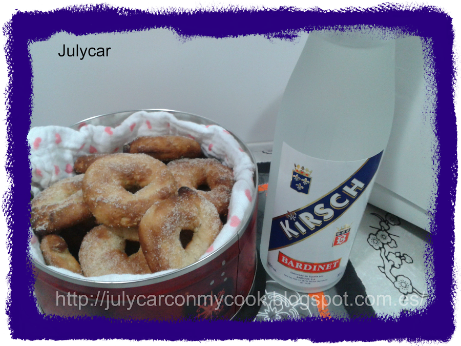 Estos roscos los puso el otro dia Yneus y los vi tan faciles de hacer, que me dije los voy a probar dandole mi toque, el toque ha sido con aceite aromatizado y con el Kirsch aguardiente de cerezas
