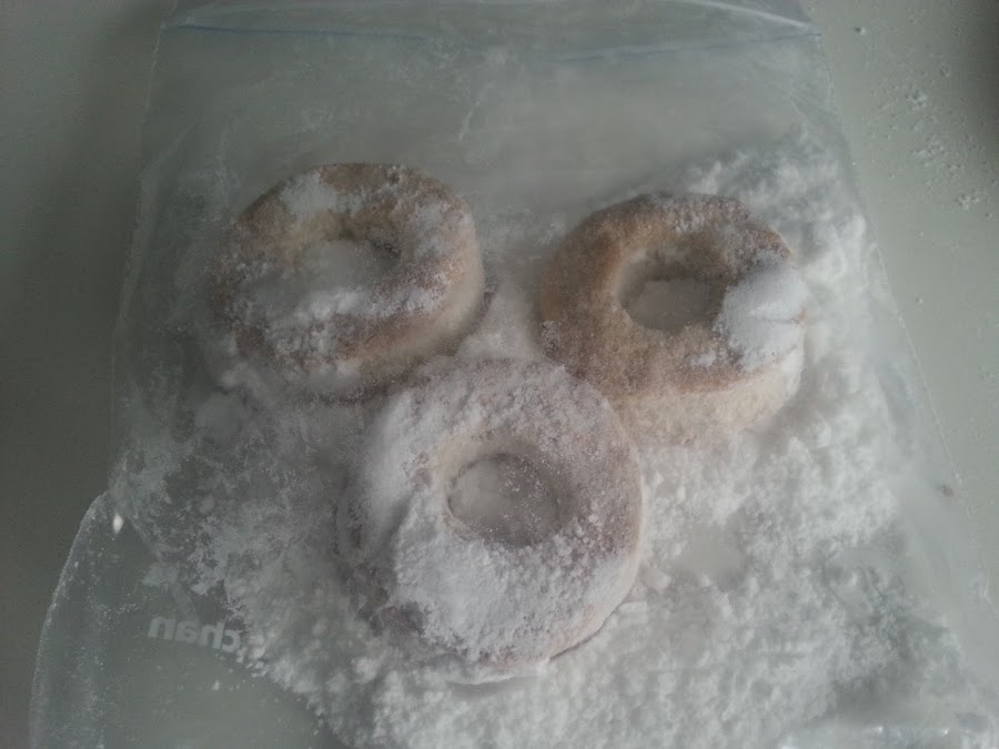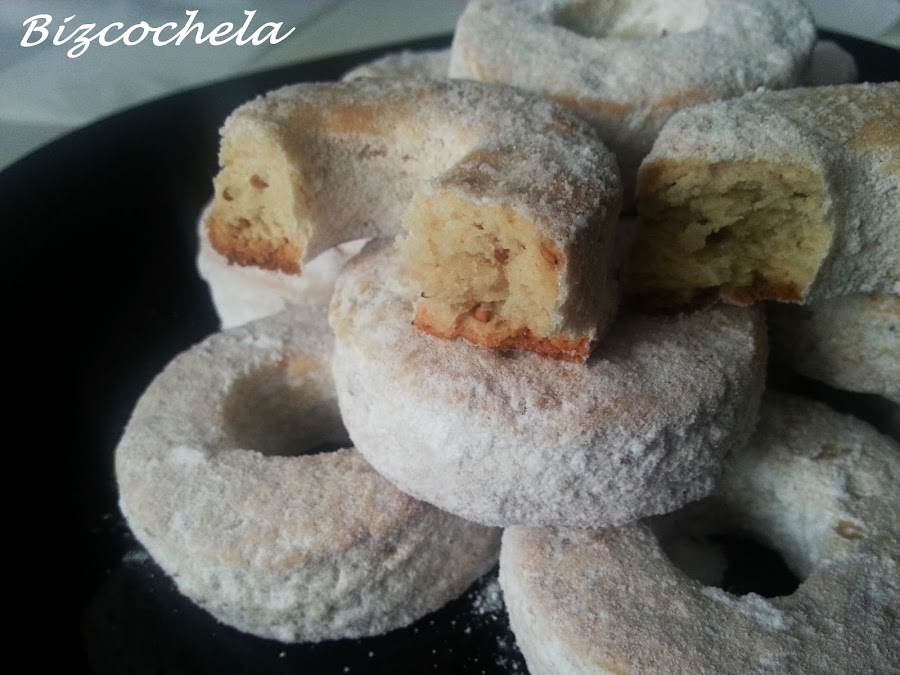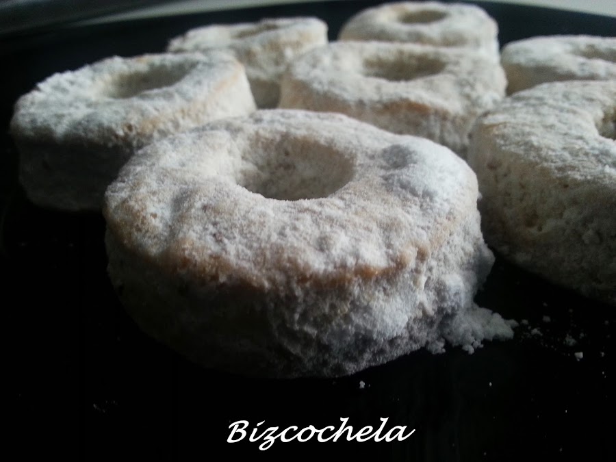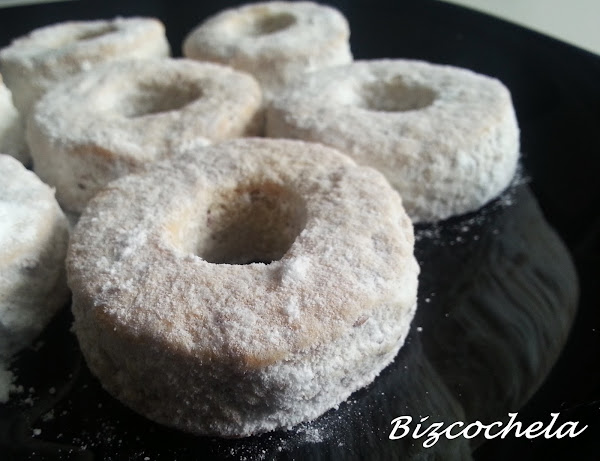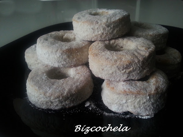 8. - En una bolsa ponemos azúcar glas y cuando los roscos estén templados, los vamos pasando por una bolsa con azúcar glas, o el azúcar en un plato....