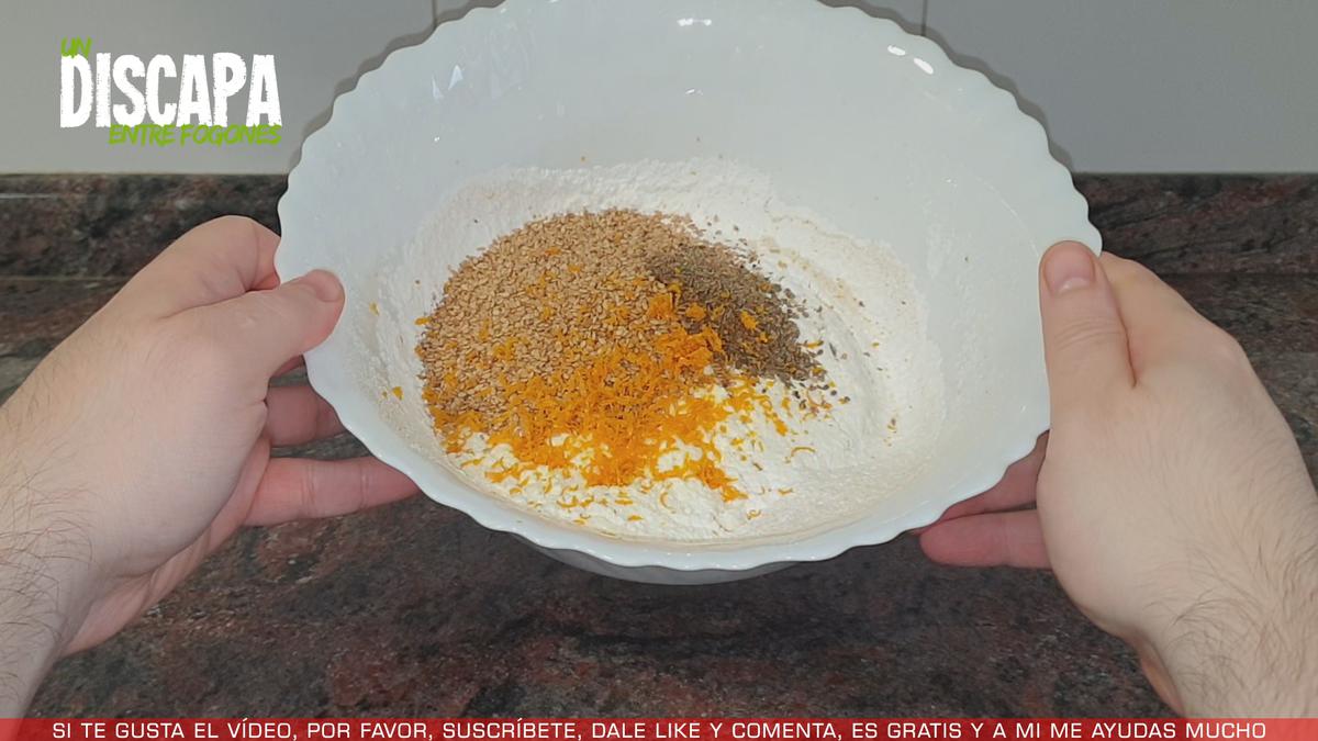 4Después añadimos el sésamo tostado, una cucharadita de granos de anís y la ralladura de la piel de una naranja.