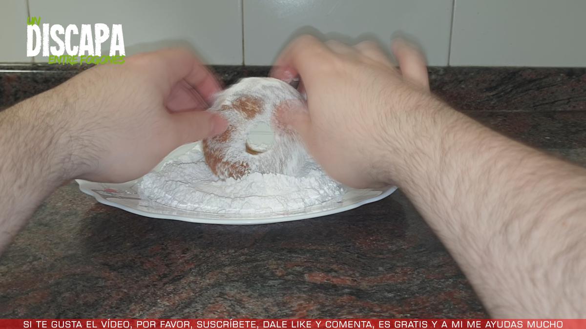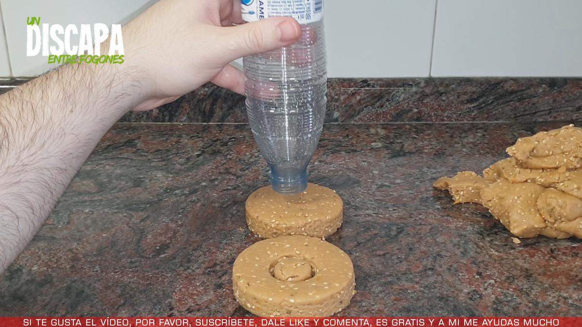 Y como no tengo un molde para hacer el agujero del centro, pues lo hago con una botella.