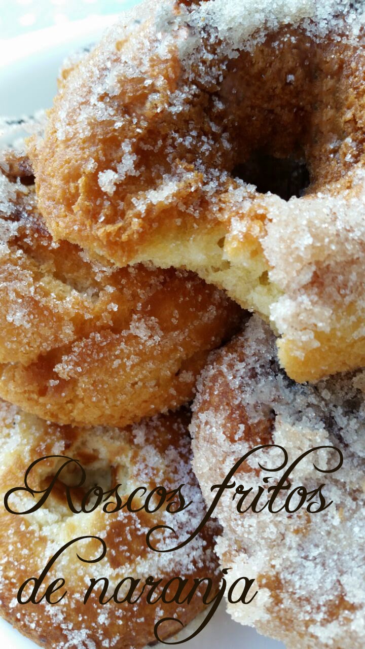Aconsejo tener la ayuda de alguien si no se tiene práctica, ya que hay que dar forma a los roscos e inmediatamente freírlos, darles la vuelta en la sartén y rebozarlos en azúcar.
