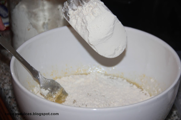 La cantidad es "la que admita" (fallo mío no pesarla). Debe quedar una masa muy blanda y pegajosa. Tal y como se ve en la fotografía. Muy importante no pasarse de harina ya que si lo haceis perderán toda la suavidad.