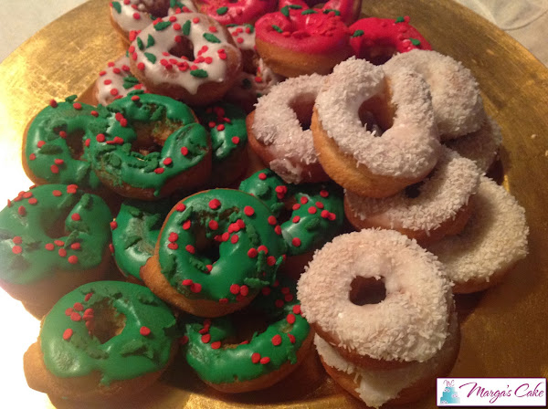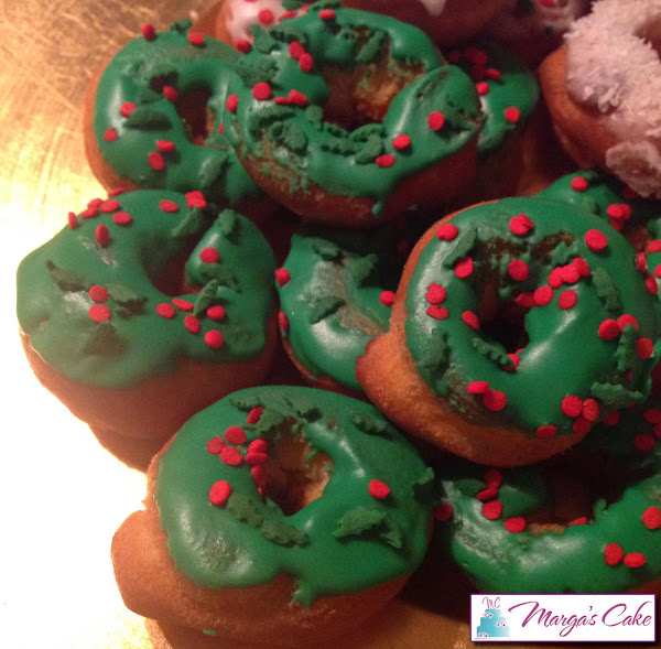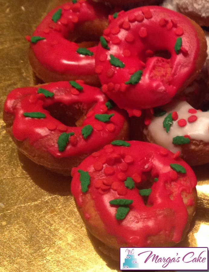 Batimos todo al igual que la anterior mezcla pero añadiéndole el colorante rojo. Bañamos los roscos solo por la parte de arriba y pondremos el Sprinkles navideño y los dejamos secar, no tardarán.