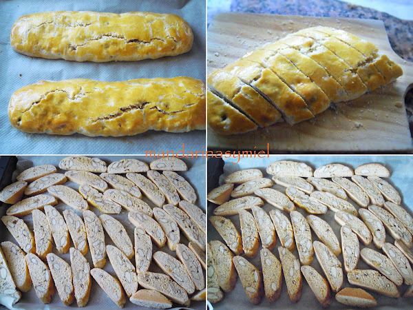 Saca las barras del horno, despégalas con cuidado y corta rodajas ladeadas de un dedo de grosor más o menos.