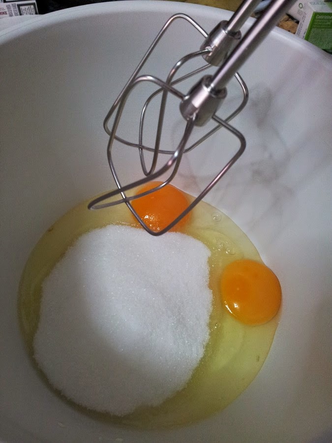 Mezclamos los huevos con el azúcar y batir hasta que estén espumosos