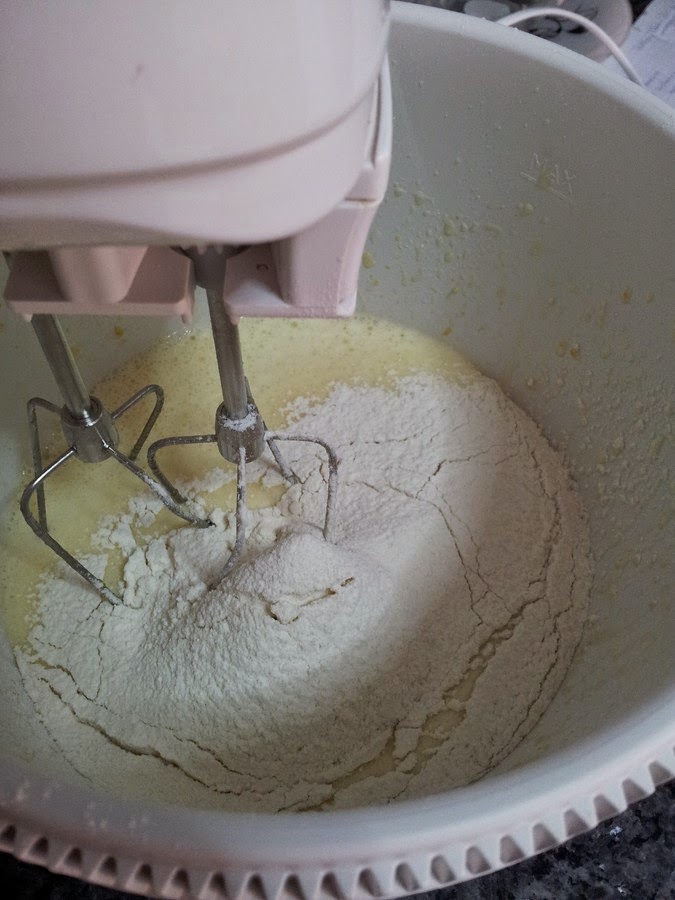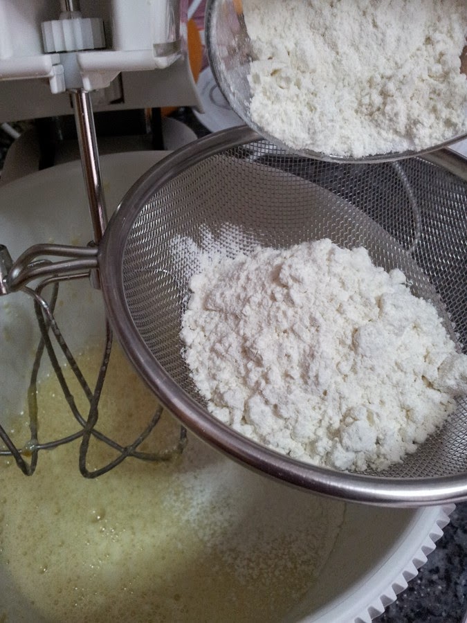Tamizamos la harina junto con el medio sobre de levadura Royal y los dos sobres de gasificante, mezclamos hasta que todo este bien integrado. La masa tiene que quedar igual que la de un bizcocho, dejamos reposar una hora, cubriendo el recipiente con papel film.