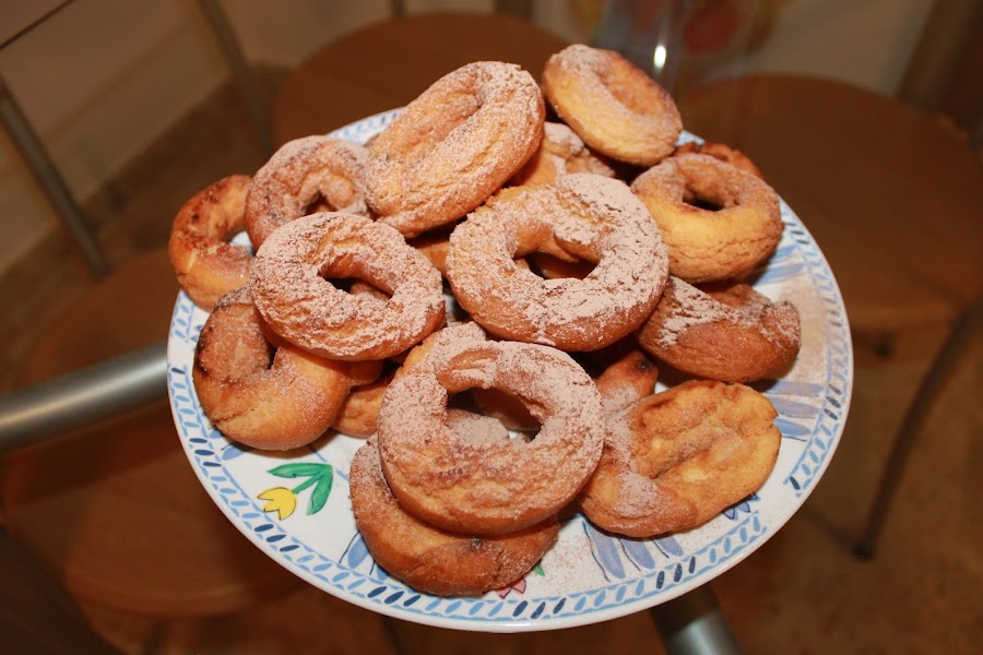 Luego vamos a ir haciendo los rollitos y formando aritos como los de las rosquillas. Una vez tengamos todas las cosquillas preparadas, vamos a freirlas en aceite a temperatura media.