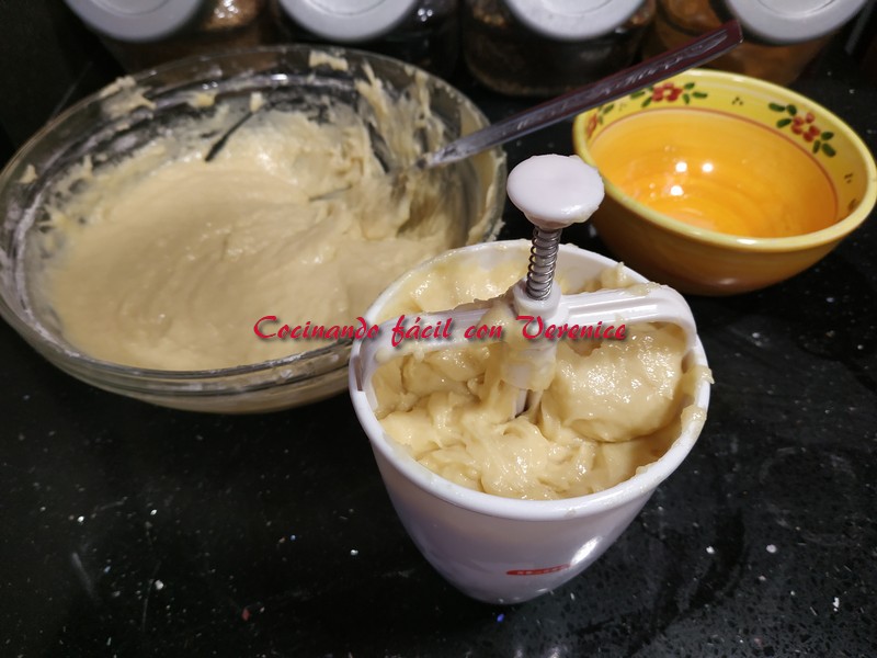 Aquí os dejo una foto de la rosquillera y también una vez llena de la masa.