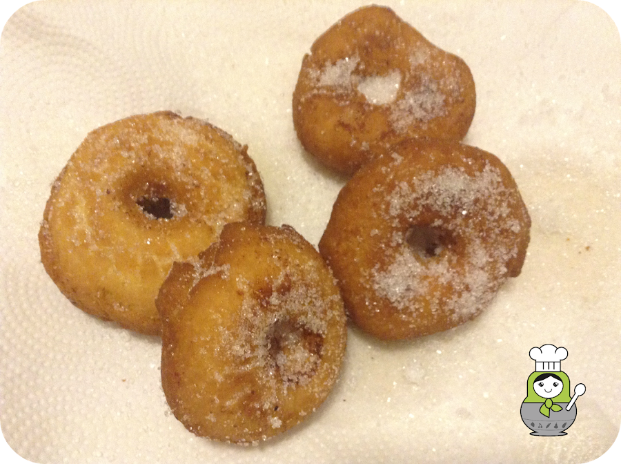 En cuanto las saquemos de la sartén las pasamos a un plato con papel de cocina (para absorber el exceso de aceite) y espolvoreamos azúcar por encima (mientras aún estén bien calientes para que se quede pegado).