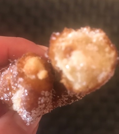 Fríe las rosquillas, resérvalas sobre papel de cocina para que pierdan el exceso de aceite y rebózalas en el azúcar.