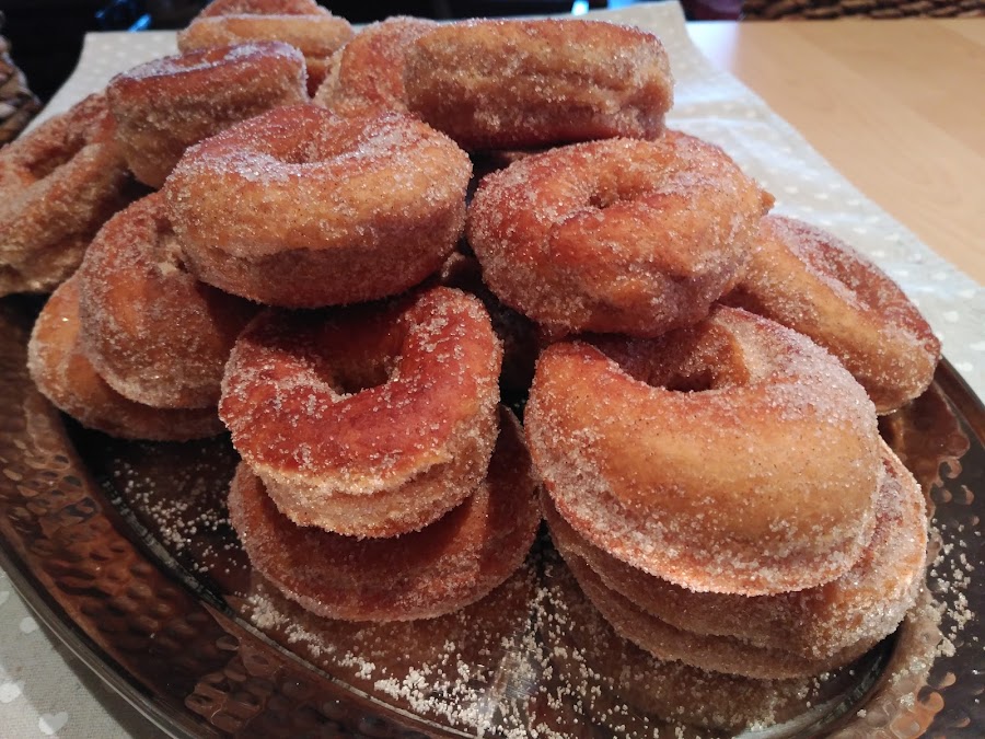 - Retirar exceso de aceite y rebozar en la mezcla de azúcar y canela.
