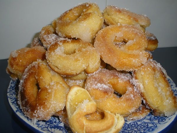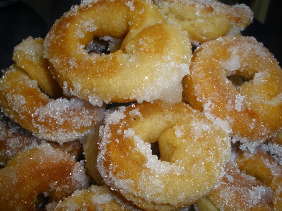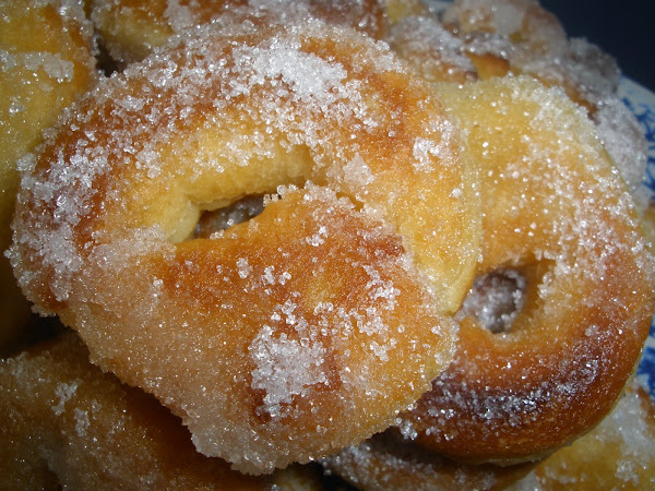 El siguiente paso (optativo) es calentar la medida de vaso de agua con la medida de medio vaso de azúcar unos cinco minutos y bañar las rosquillas en el almíbar y después pasarlas por azúcar..