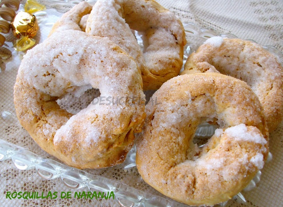Antes de disponer las rosquillas sobre una bandeja de horno forrada con papel sulfurizado (o de horno),,hay que pasar las rosquillas primero por aceite y despues por azúcar,,,