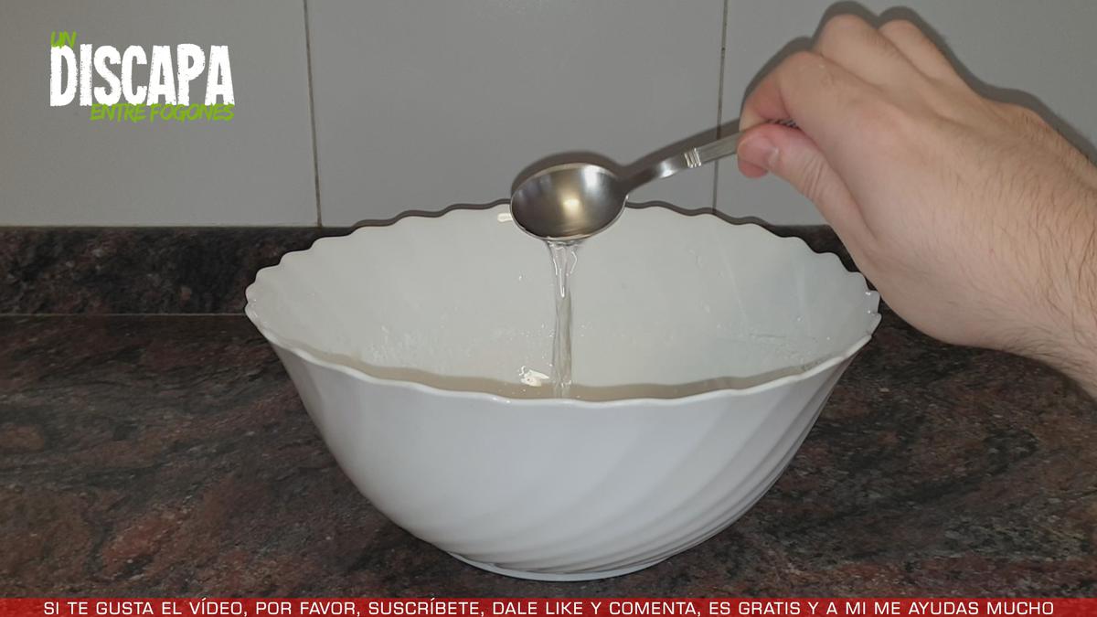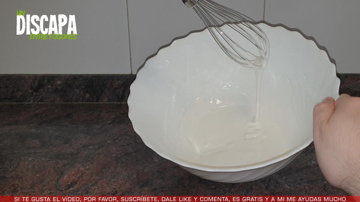 7Y mientras se enfrían, vamos a preparar el glaseado, para ello, en un bol añadimos una clara de huevo y el azúcar glas y con unas varillas batimos hasta conseguir una mezcla cremosa parecida a esta.