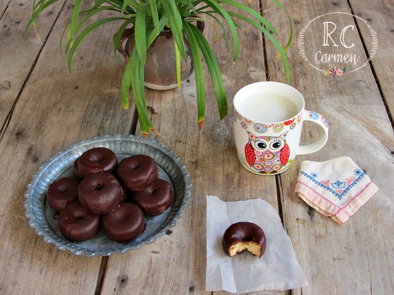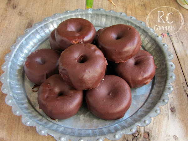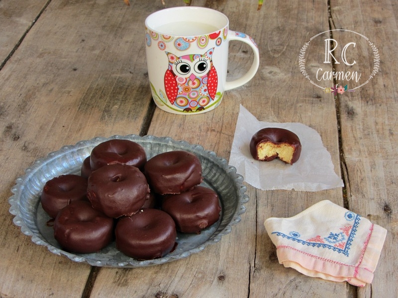 Fundimos el chocolate con la mantequilla y azúcar glas en el microondas durante 1 minuto y medio a 800w.de potencia. Mezclamos bien,bañamos las rosquillas en el chocolate y dejamos escurrir sobre una rejilla.