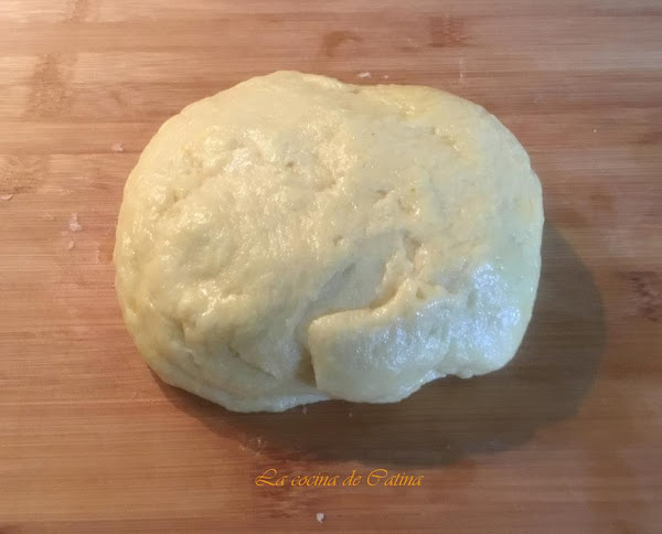 Echamos la harina poco a poco, cuando la masa empiece a ponerse mas espesa, cambiamos el batidor por el gancho de amasar y mezclamos hasta que veamos que queda una masa consistente. Dejamos reposar media hora sobre la mesa de trabajo.
