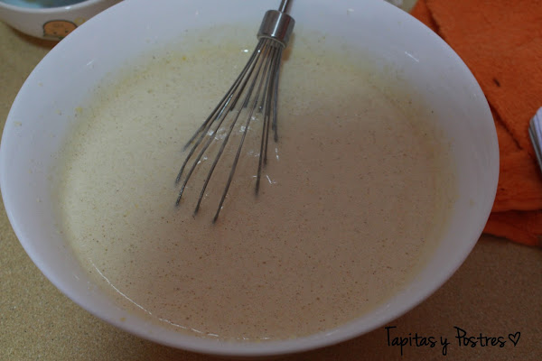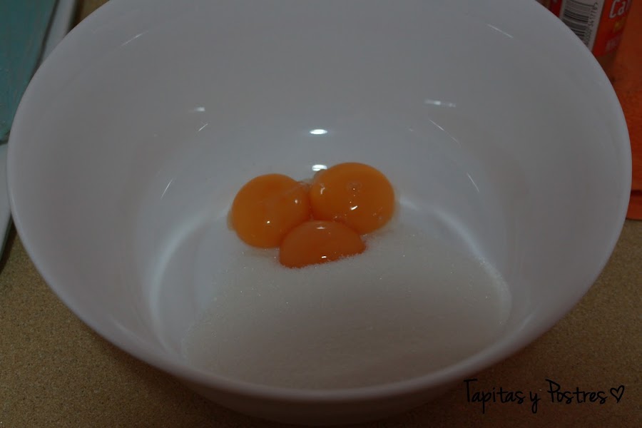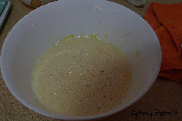 Batimos las yemas con el azúcar y le vamos agregando el zumo de limón.