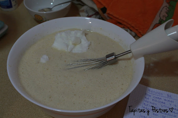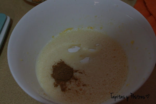 Incorporamos la canela y el bicarbonato, veréis como reacciona con el zumo de limón y la masa crece.