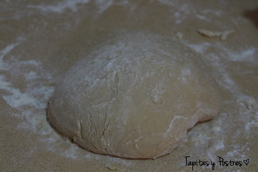 Entonces la sacamos a la encimera y terminamos de amasar a mano.
