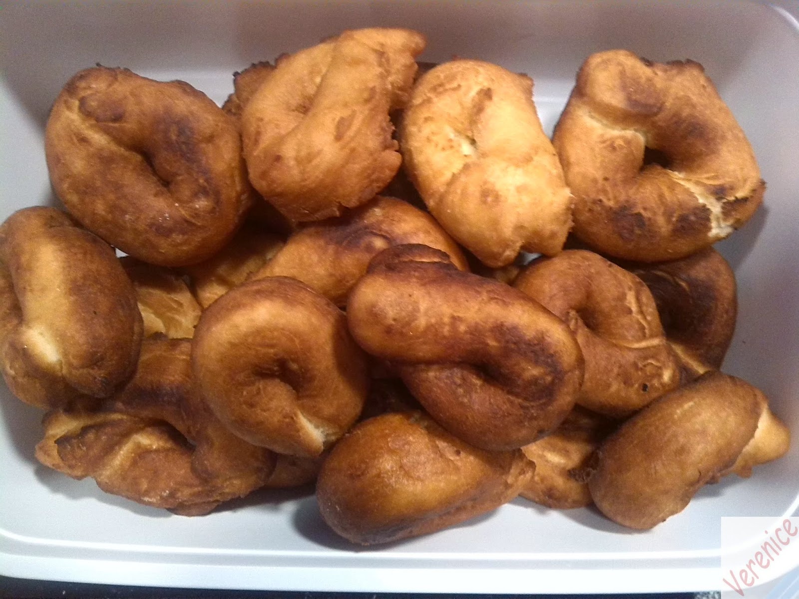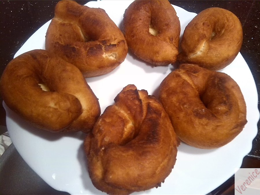 Ponemos una sartén al fuego medio, con bastante aceite de oliva, y vamos introduciendo los rosquitos uno a uno, se hacen enseguida así que hay que estar pendiente para darles la vuelta y no se quemen