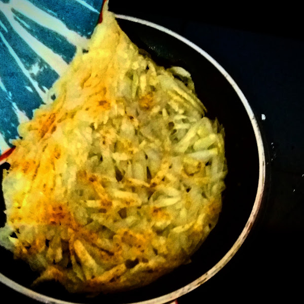 Vertemos un poco de aceite y mantequilla y una parte proporcional de patata rallada ( tendremos para dos Rostï por patata ( dos Rostï por comensal ).