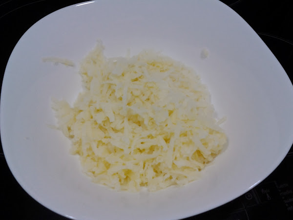 Primero debemos cocer las patatas durante 15 minutos. Una vez listas, las rallamos.