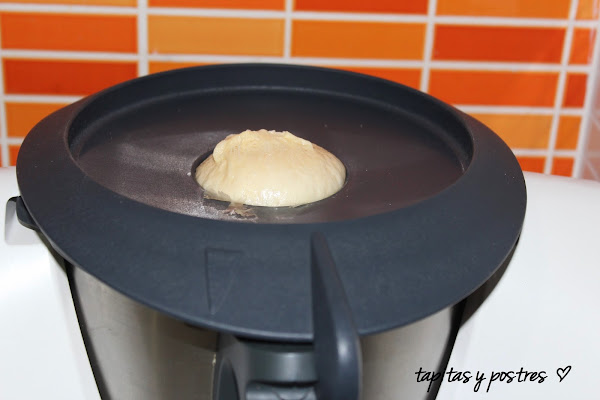 Ponemos la leche y la mantequilla blanda en el vaso, 1 m. velocidad 2, 37º. Añadimos la harina, sal, levadura y azúcar, velocidad espiga 5 minutos. Pasados 2 minutos y sin parar la maquina, añadir el huevo por el bocal