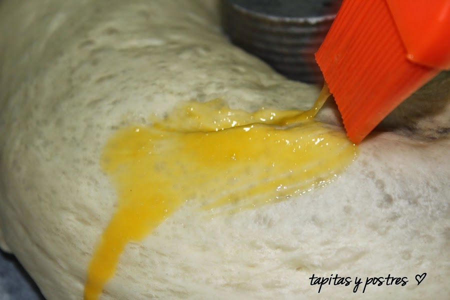Ya en el segundo levado. Pintamos con yema de huevo.
