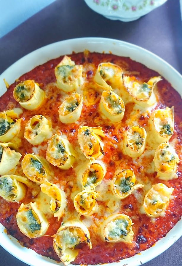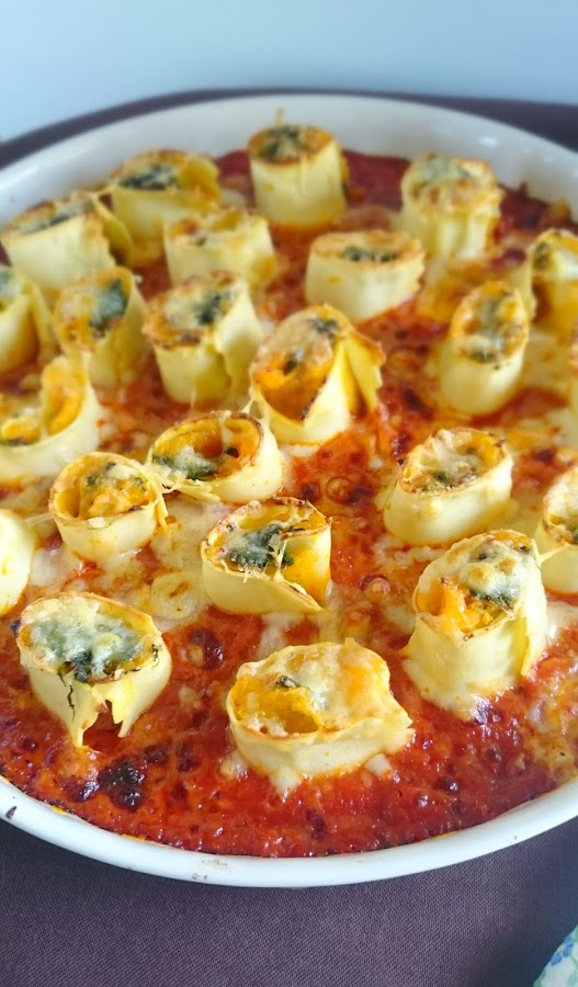 La verdad es que estaba buenísima, aunque claro todas las recetas de este hombre son una delicia! jajaja La presentación me gustó porque es diferente a los clásicos canelones o la lasaña, y además el relleno es totalmente opcional, podéis hacerlo con lo que más os guste o con lo que tengáis ese día en casa, admite muchas cosas. Yo seguí la receta del libro porque me pareció que la combinación de calabaza asada que es tan dulce, con las espinacas, el queso, y la acidez de la salsa de tomate, quedaría genial. Y sin duda que así fue. Así que si os gusta probar otros sabores os animo a que la probéis así.