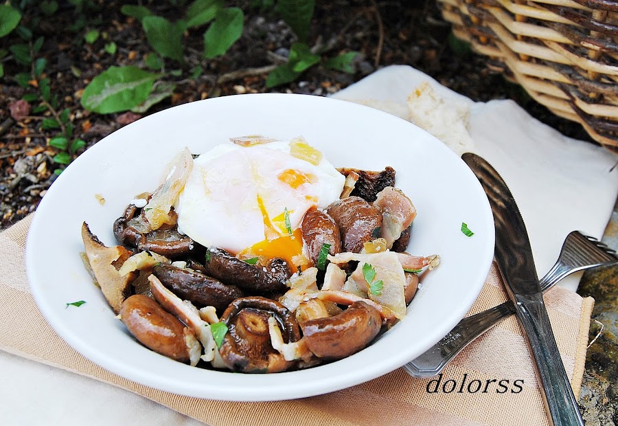 Con un huevo, panceta, unos níscalos y poco más, os ofrezco un plato de lujo, para mojar pan, y lo mejor de todo… en menos de 30 minutos.