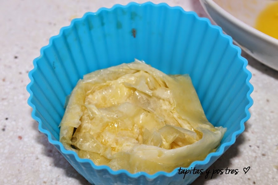 La hoja que me sobraba la he colocado de forma individual en un molde grande de magdalenas.