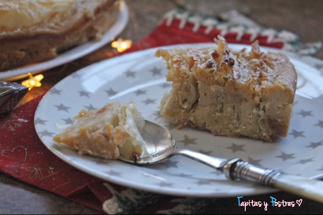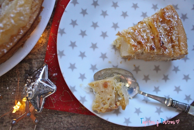 Ya tenía en el blog la versión original de este postre, pero le he dado una vuelta y aprovechando la cercanía de las fiestas le he añadido una crema de turrón que al hornear se ha convertido en un flan envuelto en las capas de la masa filo. ¡No os imagináis lo buenísima que está!